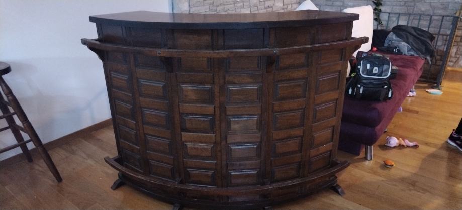 Prodaje se drveni šank sa 3 barske stolice.