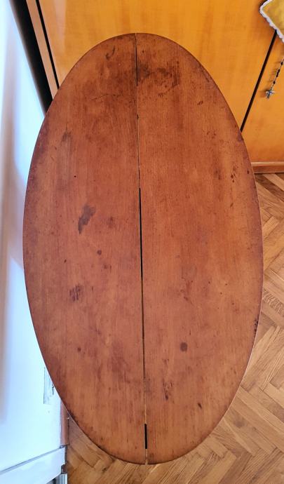Predivan stari secesijski ovalni stol puno drvo orah potrebno ga je malo uredit ,nema crvotocine gratis ovalno tabletić pripadajući.osobno preuzimanje RAVNE NJIVE