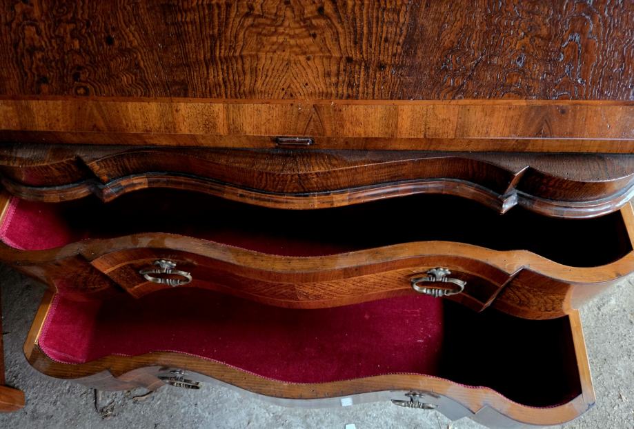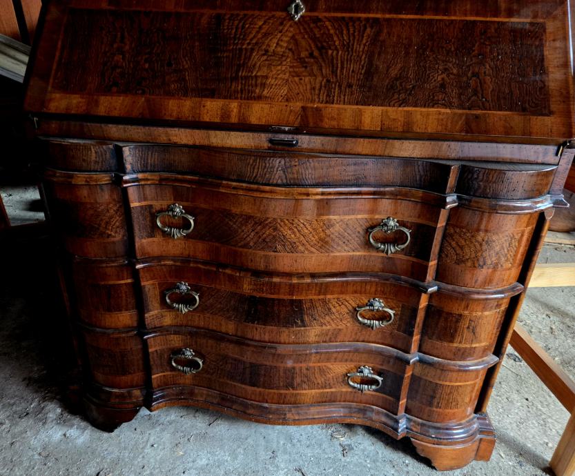Prodajem iznimno očuvani sekreter komodu. Furnir i lak su u top stanju. Ladice iznutra obložene plišem.