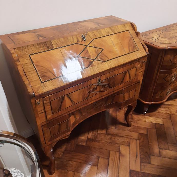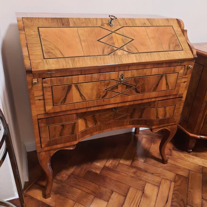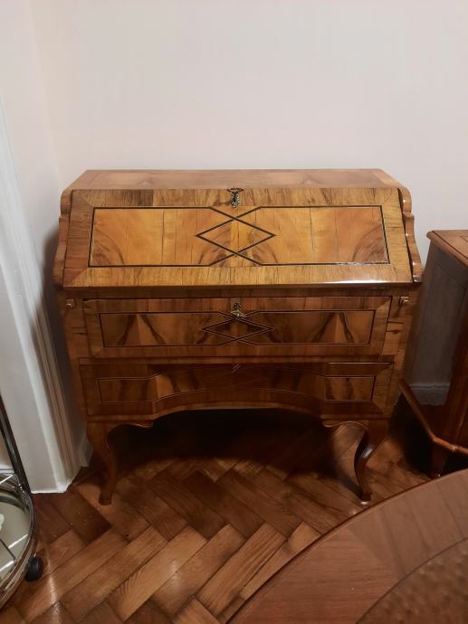 Prodaje se restaurirani starinski SEKRETER. Spaja funkcionalnost radnog stola/komode i estetiku dekorativnog komada namještaja koji prostoru daje dašak starih vremena kada su se još pisala pisma.