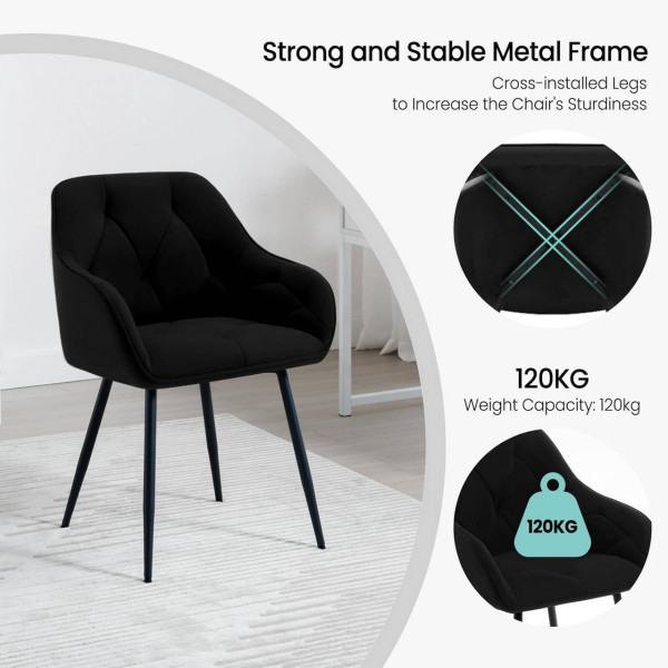 Blagovaonska stolica presvučena je svilenkastim i elegantnim baršunom i podstavljena mekom i elastičnom pjenom, pružajući meko i udobno sjedalo za udobno jelo sa svojom obitelji ili prijateljima. Blagovaonski stolac s visokokvalitetnim, čvrstim metalnim nogama i postoljem jak je, stabilan i može izdržati do 120 kg. Podesivi jastučići za noge povećavaju stabilnost na neravnim podovima i štite pod od ogrebotina. Sa širokim podstavljenim sjedalom, naslonima za ruke i udobnim naslonom za leđa koji se lako može nagnuti, ergonomski stolac pruža vašem tijelu dobru potporu i optimalnu udobnost za opuštanje tijekom sjedenja. Stolica za spavaću sobu, stolica za dnevnu sobu, stolica za računala, stolica za toaletni stol, stolica za kućni ured, stolica za šminkanje, kuhinjska stolica, barska stolica ili čak radna stolica u radnoj sobi - kako ćete koristiti stolicu u potpunosti ovisi o vama! Za sve informacije nazovite na broj telefona 092/399-75-19