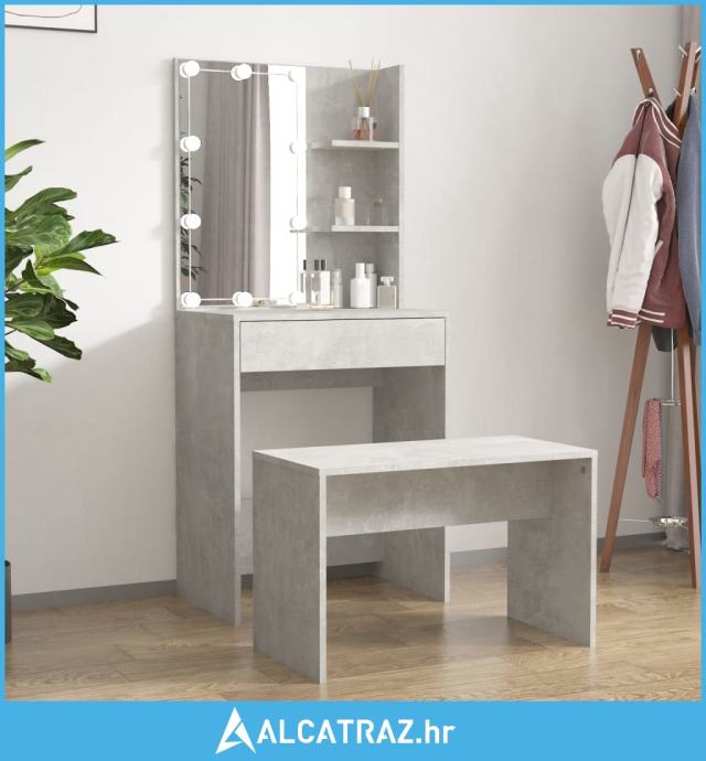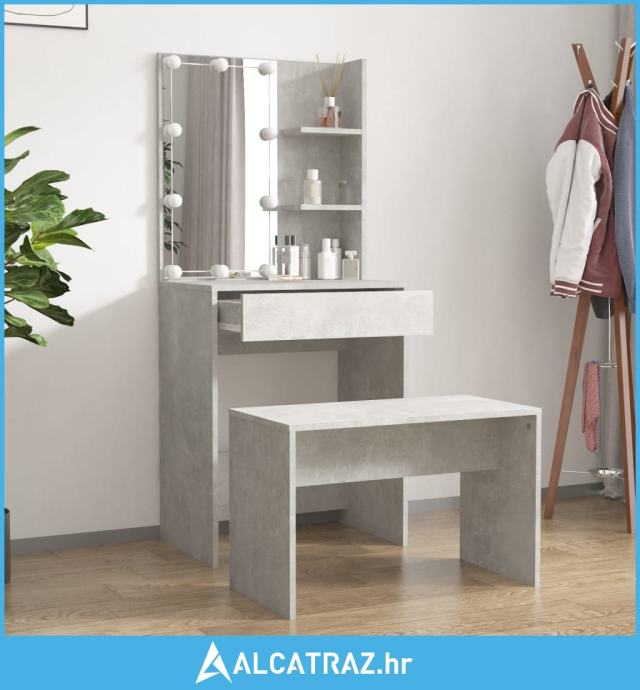 Set toaletnog stolića LED siva bojabetona od konstruiranog drva - NOVO