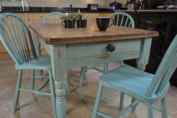Prodajem stari lijepo očuvani kuhinjski stol i 4 stolice u shabby chic stilu.