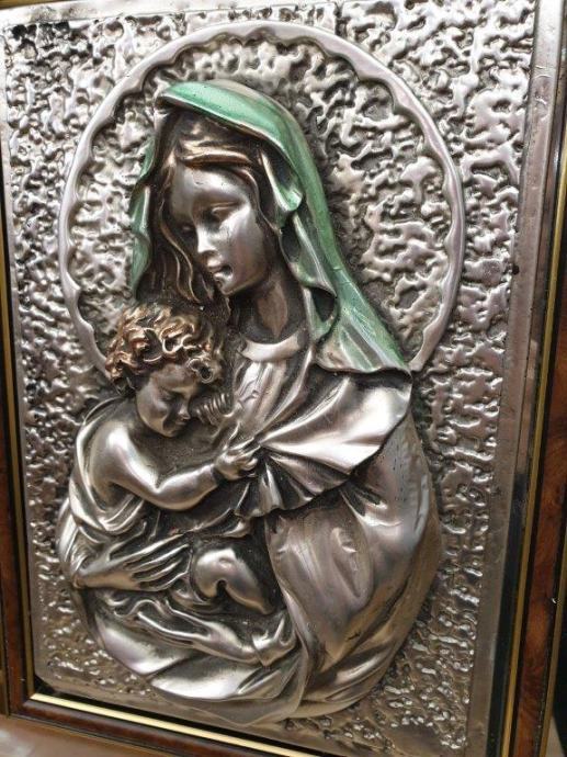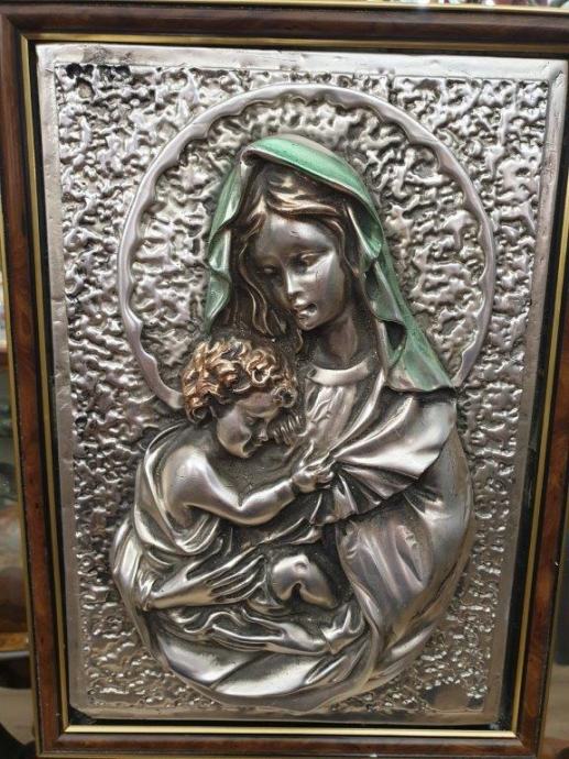 Slika, rad u srebru, predivan rad, odlično stanje. Marija s djetetom.