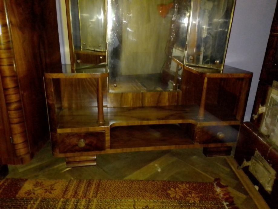 Namještaj je ručne izrade od punog orahovog drveta, rađen po naruđbi. Sastoji se od dva ormara, psihe, šimizeta, dva noćna ormarić, bračnog kreveta iz dva dijela, stola i četiri stolice. Izvrsno je očuvan. Obiteljsko nasljeđe iz 50- ih godina. Cijena nije fiksna.