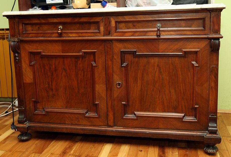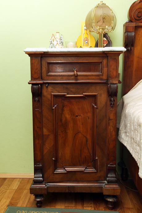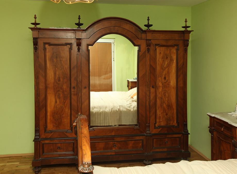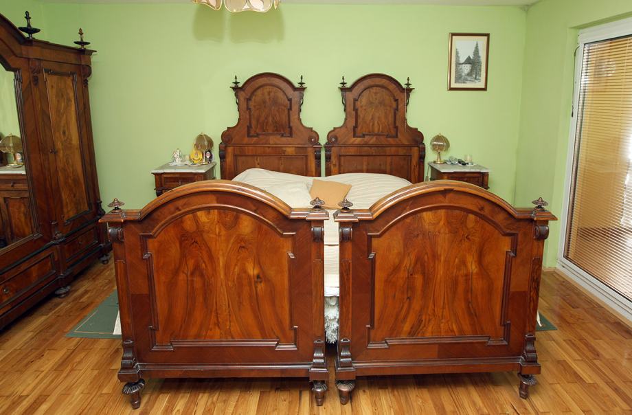 Prodaje se spavaća soba sastavljena od bračnog kreveta od dva dijela, dva noćna ormarića, komode te ormara. Razdoblje spavaće sobe je historicizam. Namještaj je u odličnom stanju.