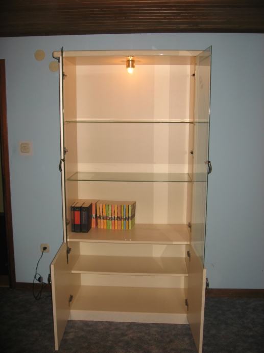 Staklena vitrina sa svjetlom. Sirina 100, visina 195, dubina 45 cm.