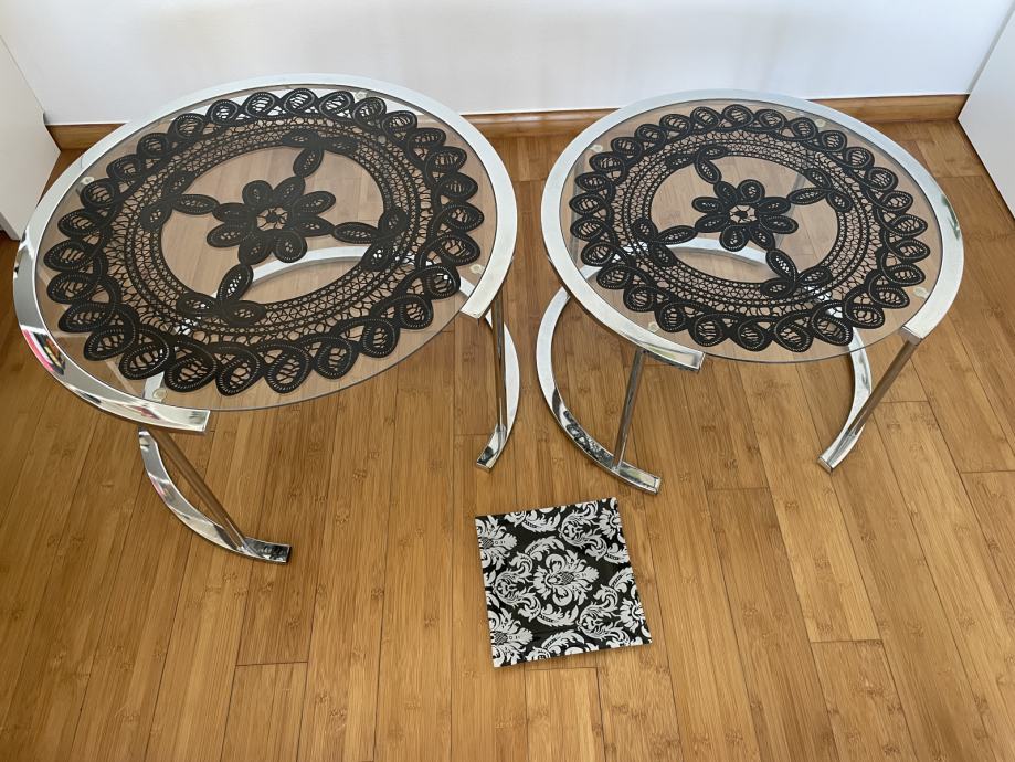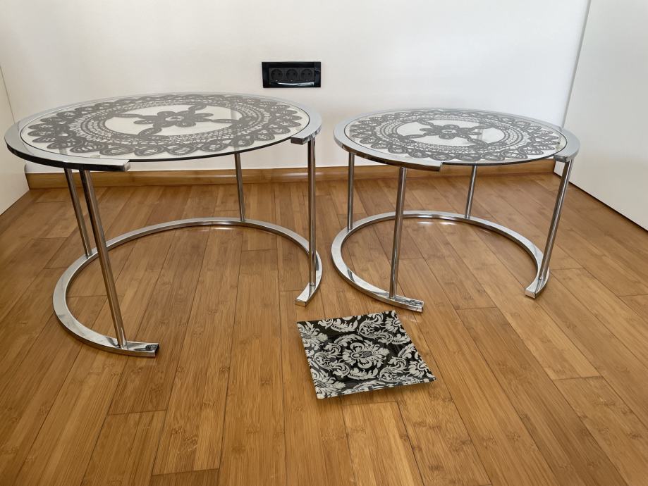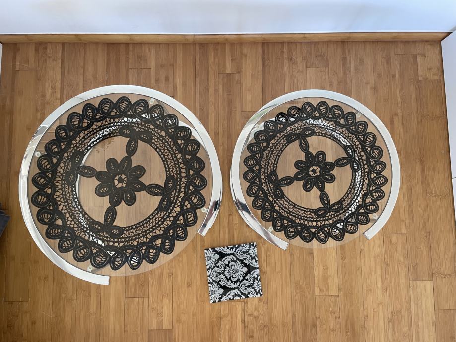 Prodajem 2 staklena stolića (promjeri 55 cm i 62 cm) i ukrasni tanjur za voće