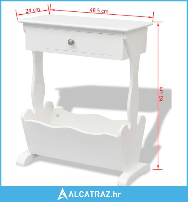 Ormarić za časopise s velikom ladicom ima dovoljno prostora za spremanje vaših časopisa i drugih stvari. Ovaj proizvod možete također upotrebljavati kao bočni stolić ili noćni ormarić i staviti ga pored sofe, dnevnog ležaja ili u spavaću sobu te držati svoje omiljene časopise ukusno pohranjene na praktičnom mjestu!