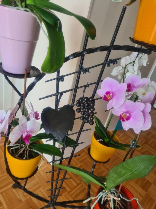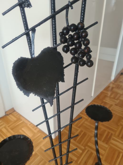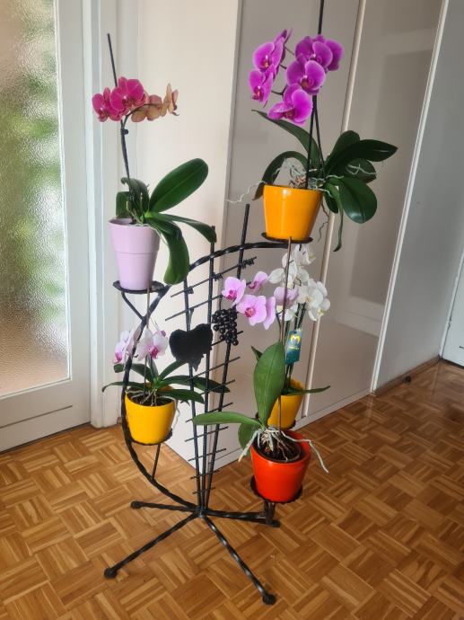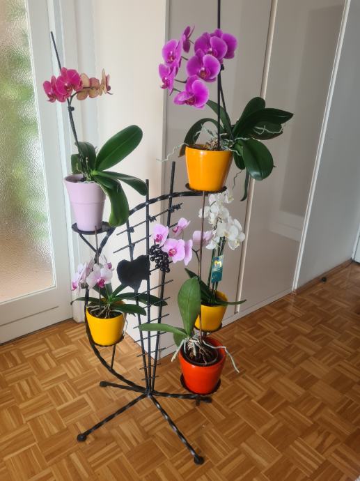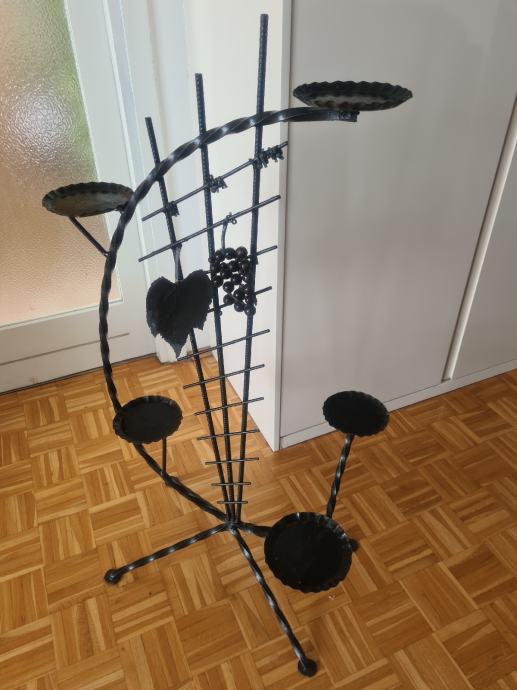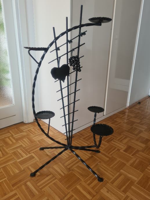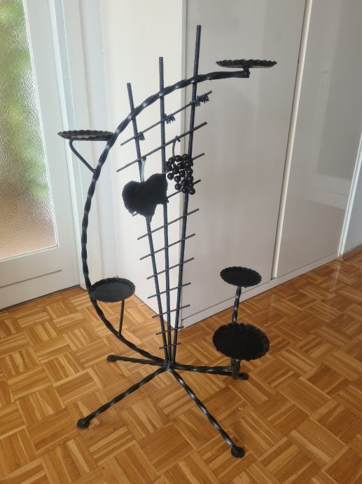 Prekrasan stalak za cvijece od kovanog zeljeza, sa 5 polica. Visine 100cm, a najvisa tocka je 107cm, sirina stalka je 55cm. Crne boje.