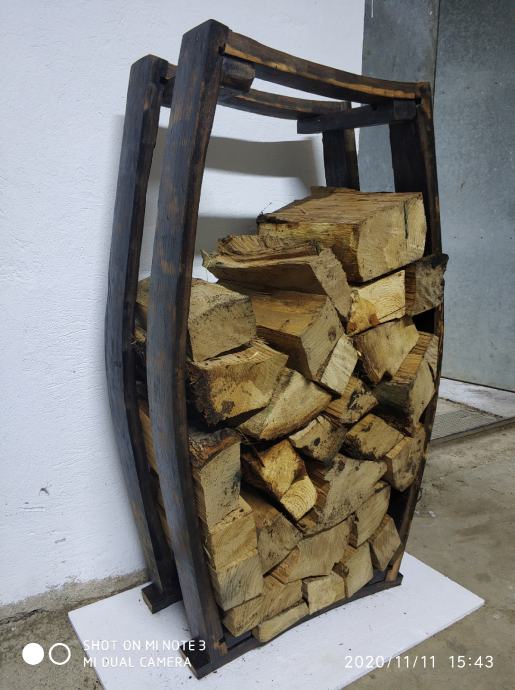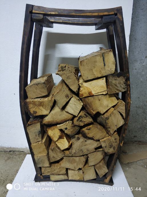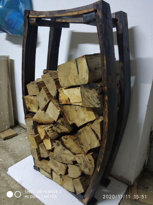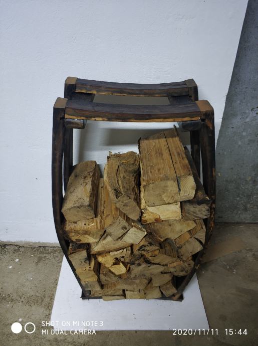 Stalak/ polica od starih bačvi za drva uz kamin/ peć/ roštilj