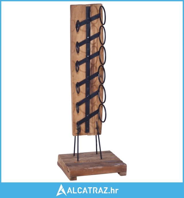 Ovaj podni stalak za boce izrađen je od odabrane tikovine, što osigurava stabilnu potporu bazi. Također, željezne šipke omogućuju bolje pričvršćivanje boca. Kombinacija prirodnog drva i metala donosi retro notu. Stalak može smjestiti 6 boca vina standardne veličine i lijepo izgleda u svakoj kuhinji ili dnevnom boravku.