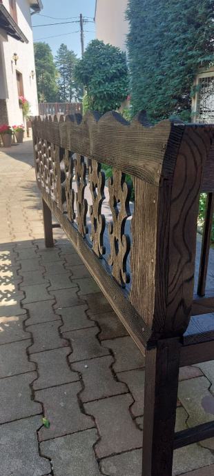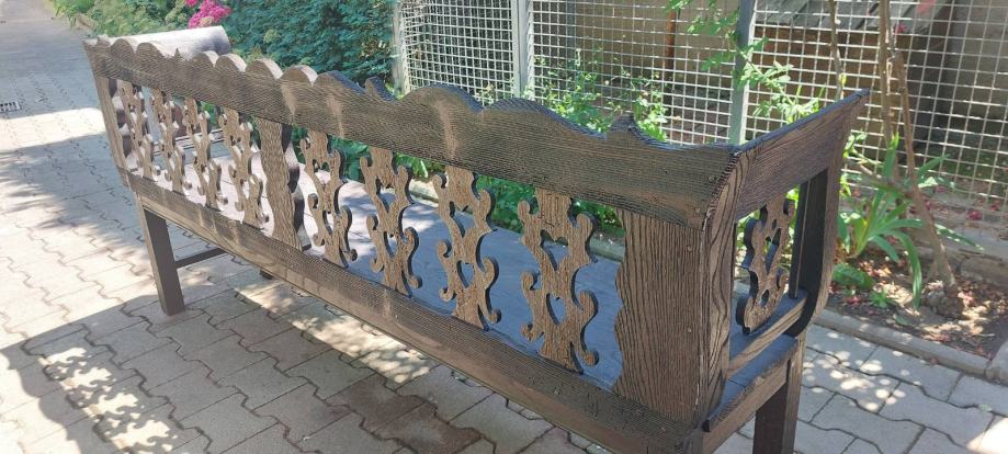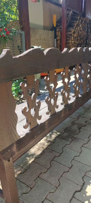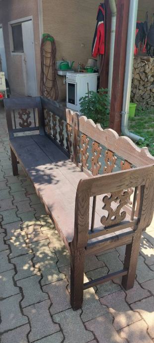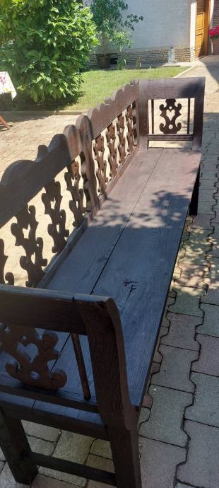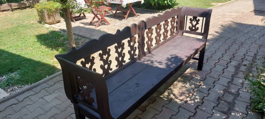 Dobro sačuvana stara drvena klupa, ručni rad majstora iz kontinentalne Hrvatske.