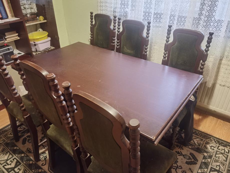 Prodaje je se stari hrastovi stol sa 6 stolica staro preko 60 godina širina 80 dužina 140 visina 80