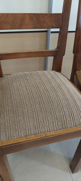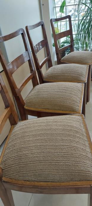 Prodajem četiri stolice u retro stilu koje su u super stanju bez oštećenja tapeciranog i drvenog dijela. Čvrste su ne klimaju se i veoma ugodne za sjedenje jer su i opruge dosta čvrste.