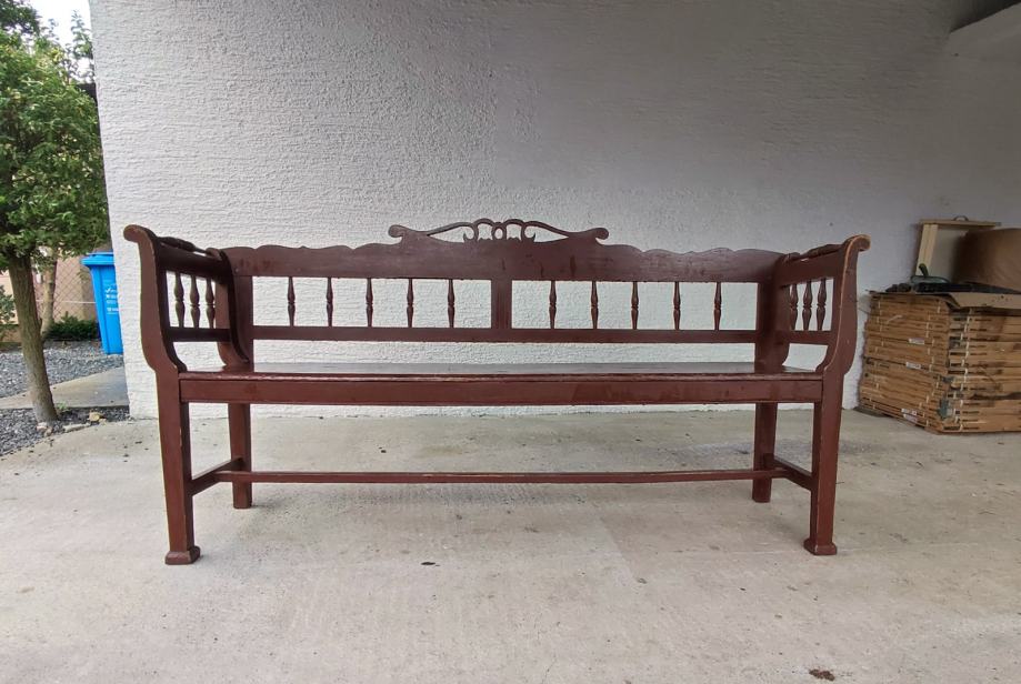 Jedinstvena, ručno izrađena starinska klupa, pravo blago iz srca Podravine. Ova prelijepo očuvana klupa nosi sa sobom toplinu nekih prošlih dana – kada su se obitelji okupljale uz štednjak, a razgovori su trajali dugo u noć.