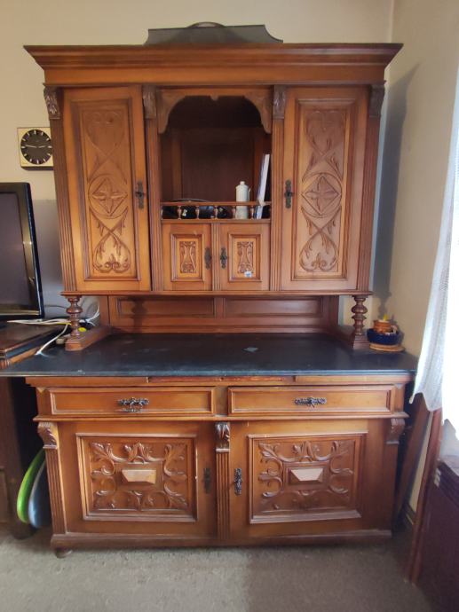 Prodaje se stara vitrina s mramornom pločom.
