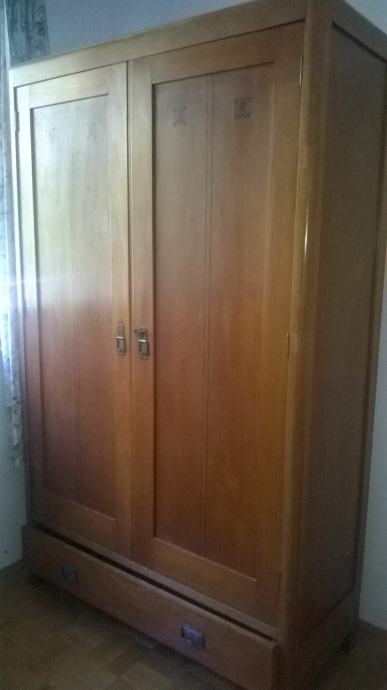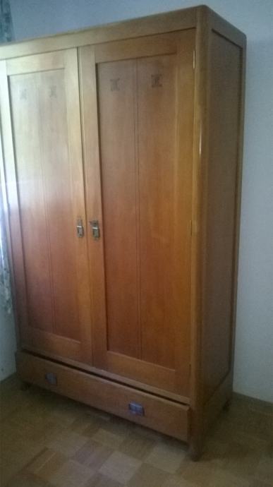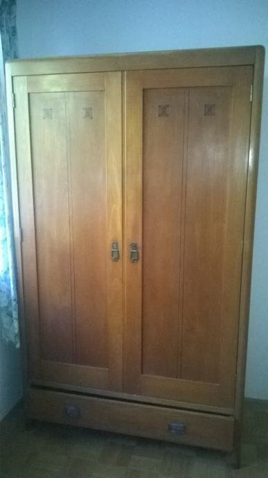 Starinski garderobni ormar od punog drveta, s intarzijom, renoviran.