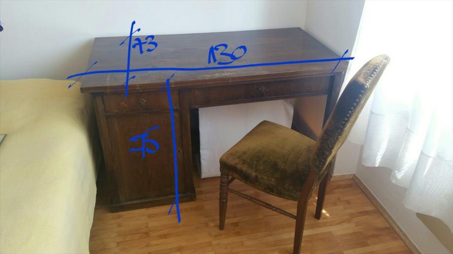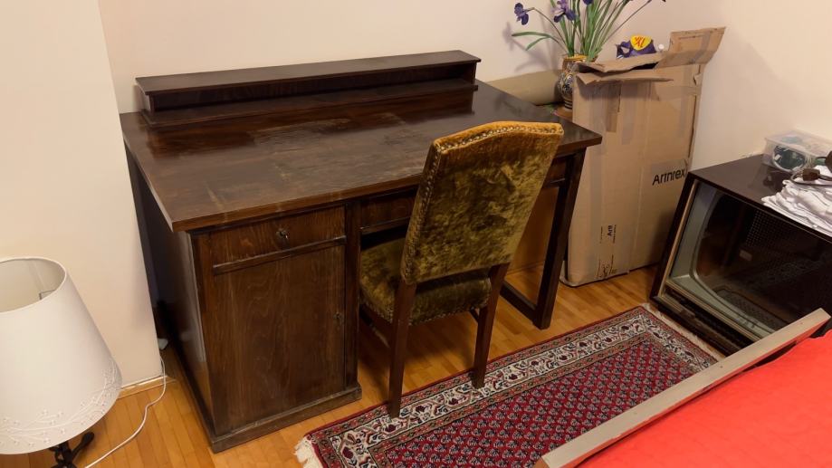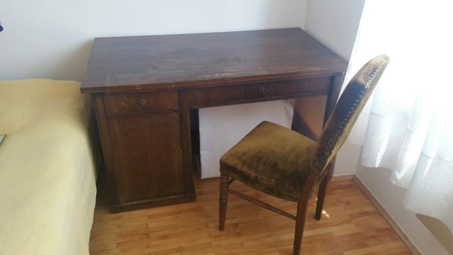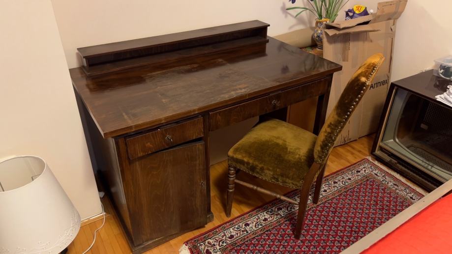 Stol ima četri duboke ladice, potrebno restaurirati gornju površinu stola.