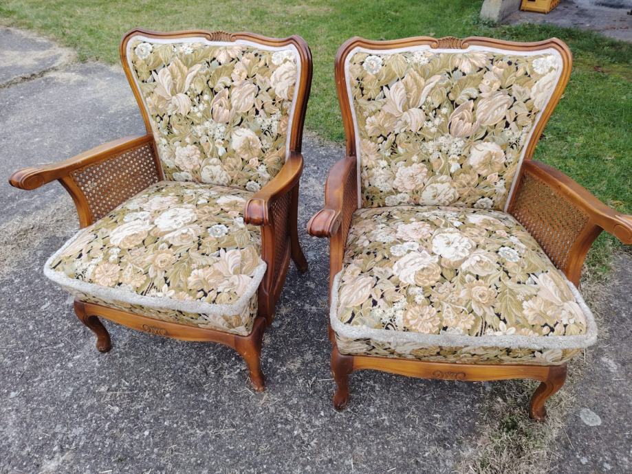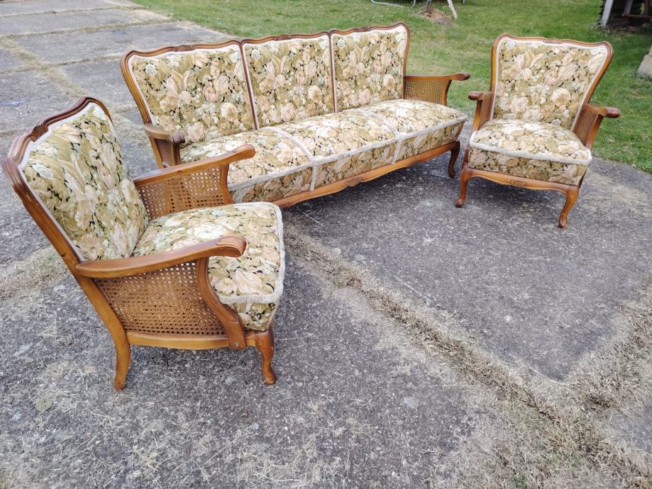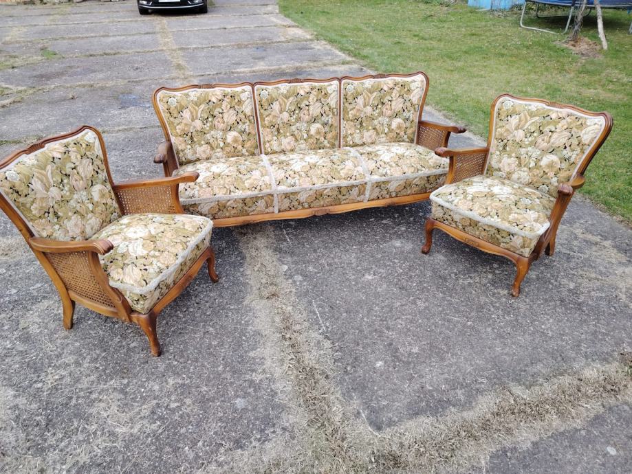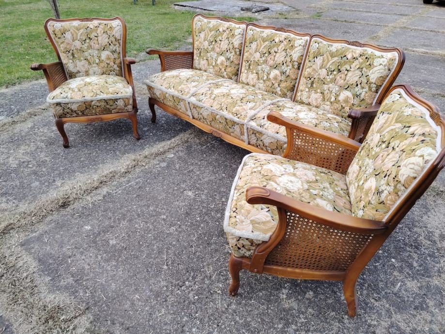 Prodajem drveni stilski trosjed i dvije fotelje. Očuvano.