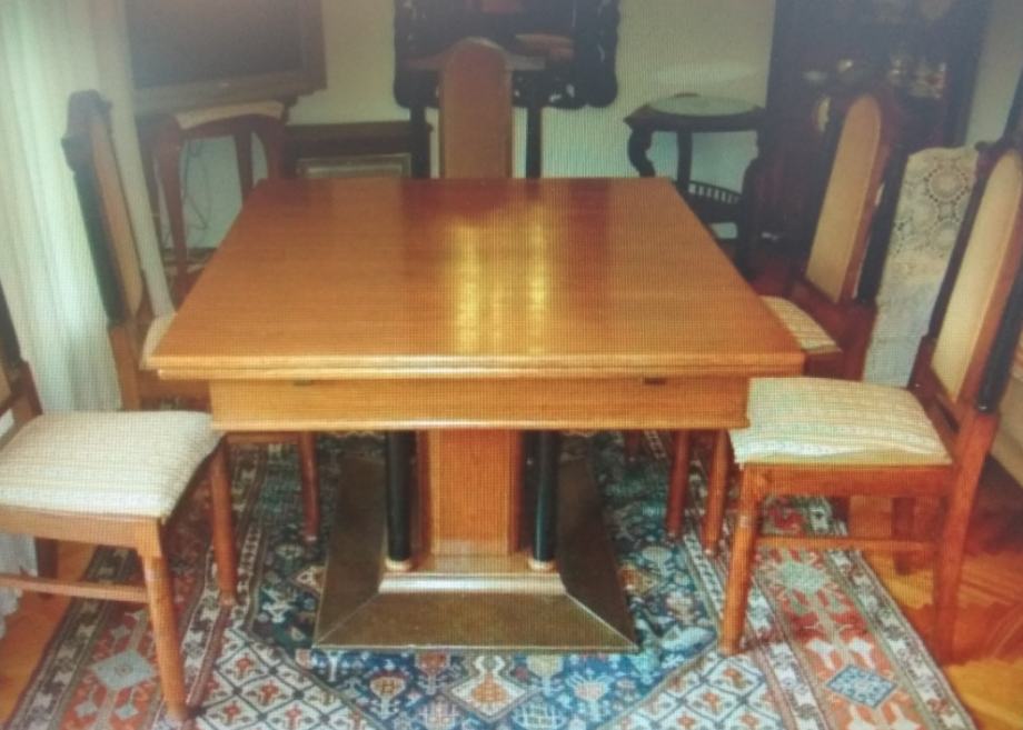 Stol na razvlačenje 130x110/270x110 cm, 6 stolica. Iz obiteljskog nasljeđa, namještaj je u odličnom stanju
