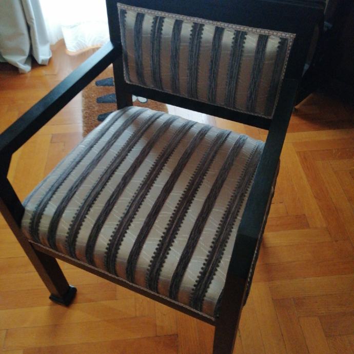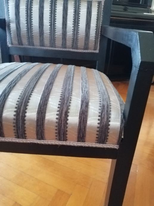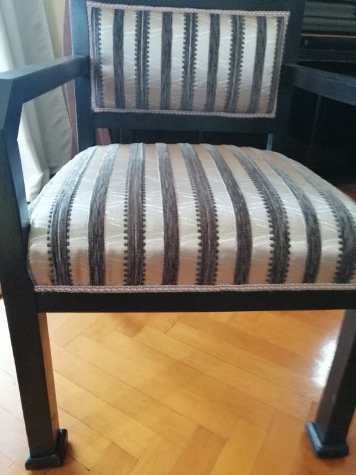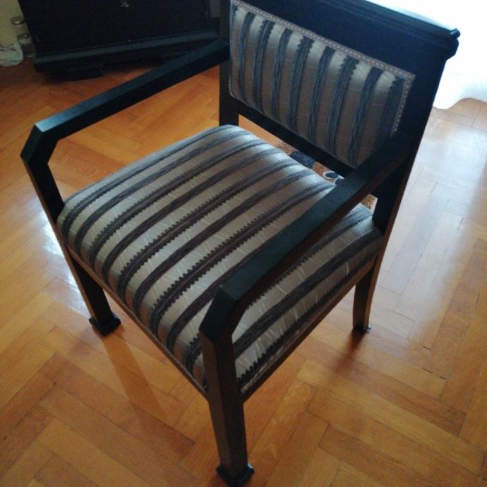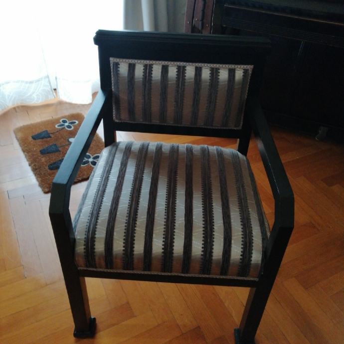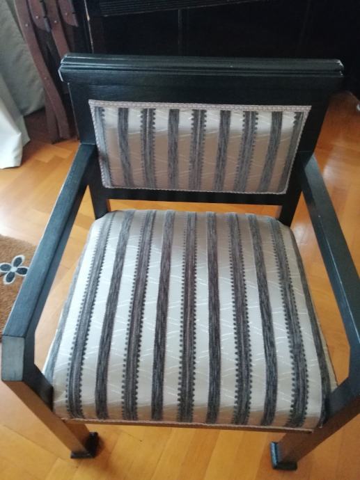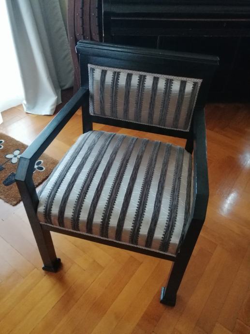Prodajem stilsku stolicu iz razdoblja secesije, crni bajc, uređena i pretapecirana mebl štofom iz Mebla.