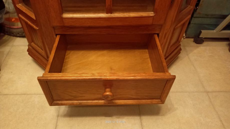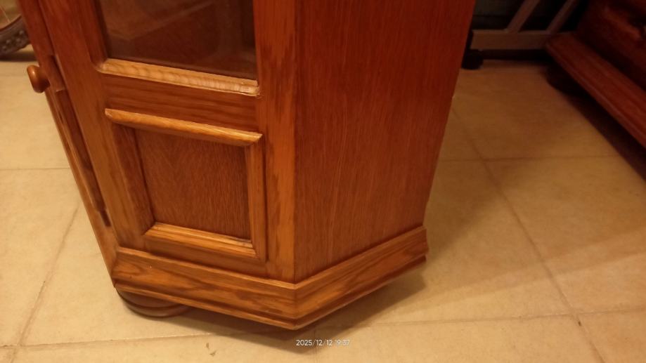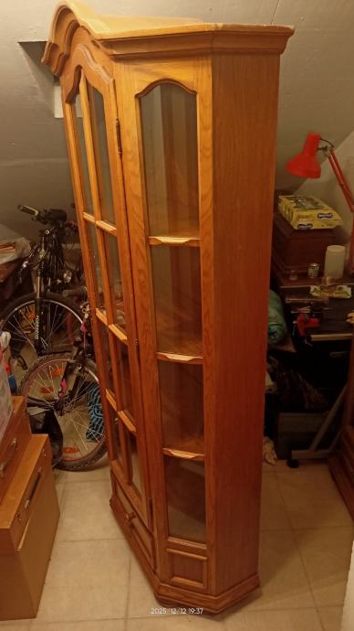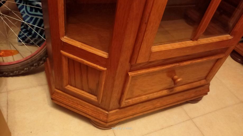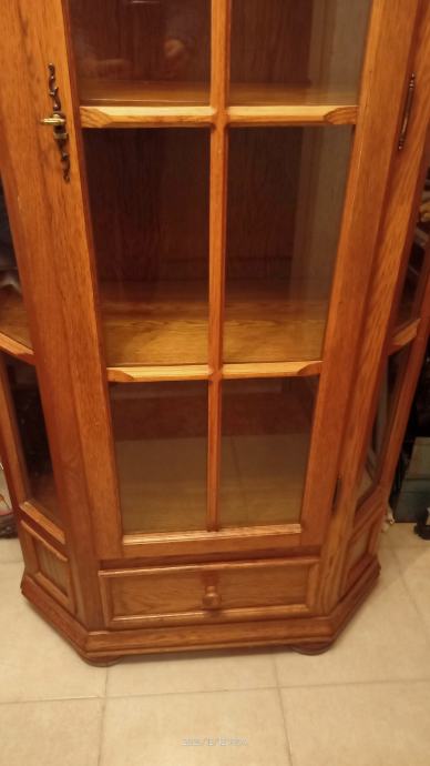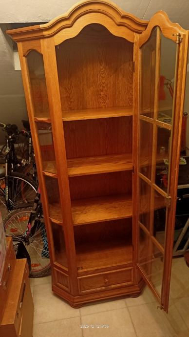 Prodajem stilsku staklenu vitrinu u super uščuvanom stanju njemačkog proizvođača. Materijal puno drvo hrast. Vitrina ima 3 police i jednu ladicu. Vrlo lijepog dizajna sa vratima koja se mogu zaključati. Dimenzije širina 76 cm (84 cm), visina 190 cm i dubina 36 cm. Cijena 250€. Molim zvati na mob. 091/2356157