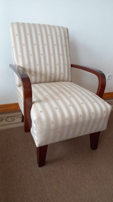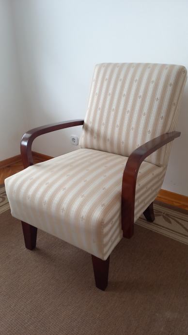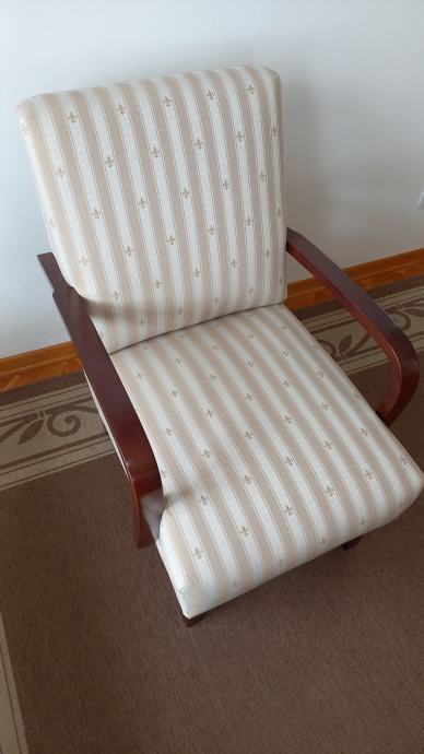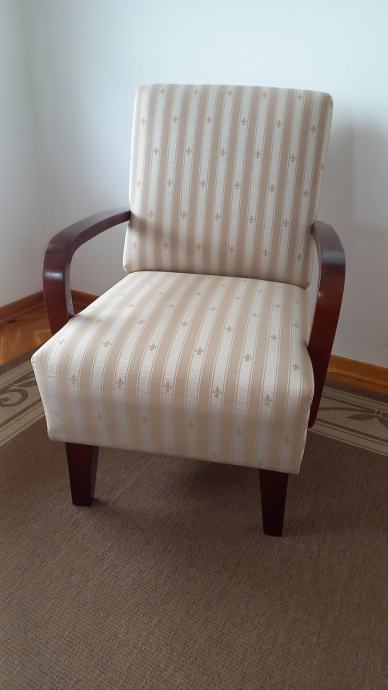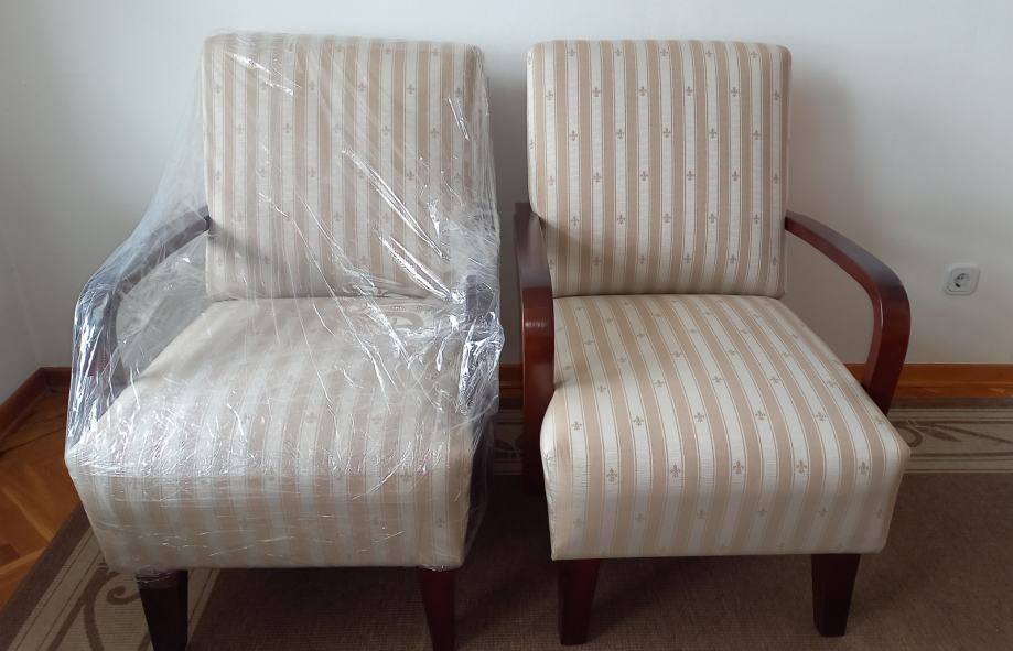 Prodajem 2 stilske fotelje. Novo uređene i tapecirane na klasičan način s oprugama. Imaju čvrste drvene rukohvate. Dimenzije fotelje su 60 x 80 x 90 cm (ŠxDxV), visina sjedala je 45 cm. Vrlo su udobne za sjedenje. Cijena po fotelji 6.000 kn, prodaju se isključivo u paru. Kontakt telefon 091/2330925