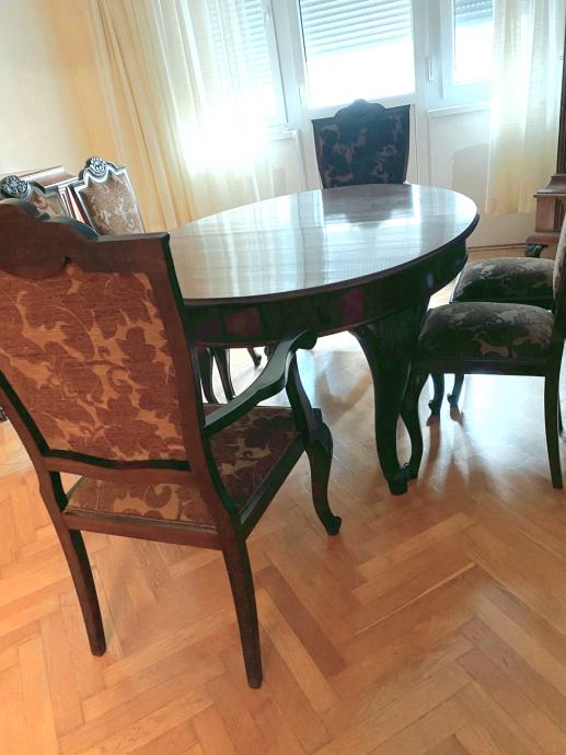 Restauriran i očuvan stilski namještaj za blagovaonu / dnevnu sobu. Prodaje se kao cijelina ili pojedinačno, osim stola i 6 stolaca koji idu u kompletu.