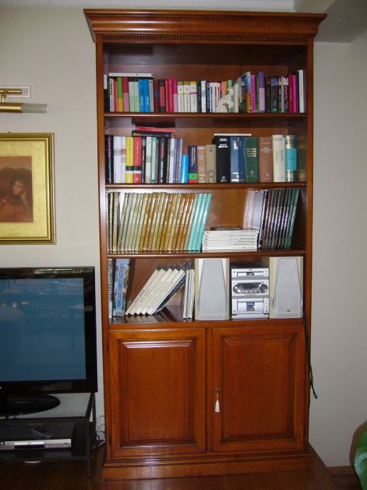 - 1 regal od trešnjevine, dobro očuvan, dimenzija 102x40x225 cm, cijena 400 €