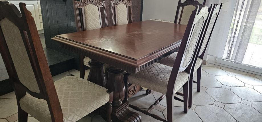 Rustikalan stol sa 6 stolica. 160-210x90cm
