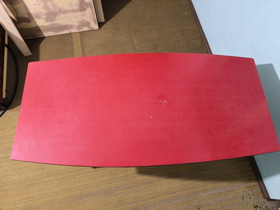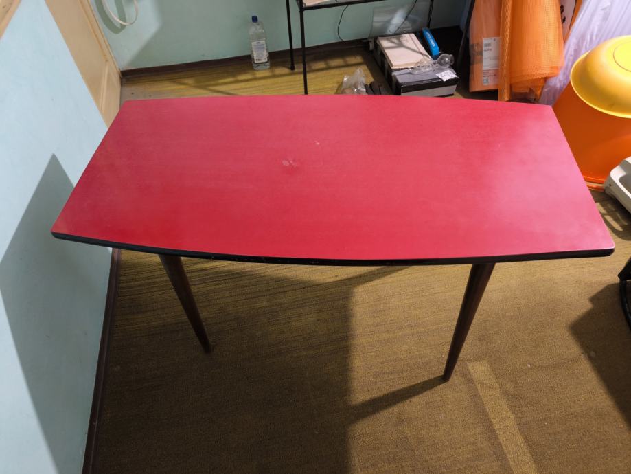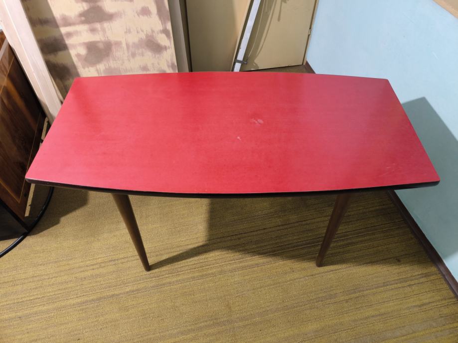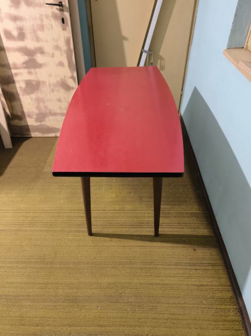 Očuvan retro stol crvene površine za dnevni boravak, cijena je 400€.