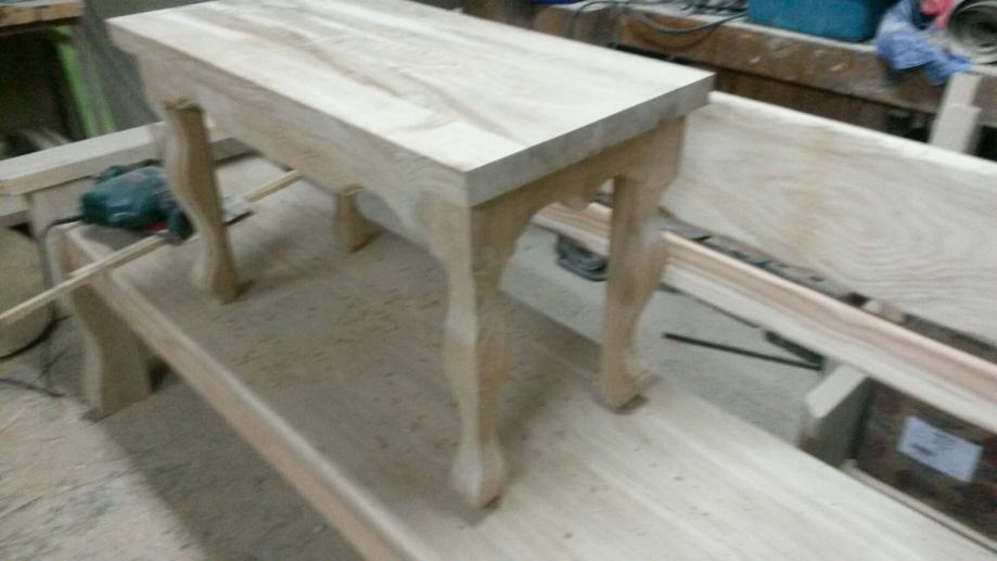 Stolic ili klupica od punog drveta u bijeloj boji ili boja drveta tapecirano ili ne sa tkaninom po zelji ako zelite klupicu.