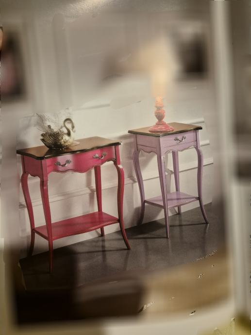 Pripada u stilski namještaj ali može se ubaciti i u moderno ..boja po želji..bež..plavkasta..siva..moze gore umjesto stakla i drvo uz nadoplatu