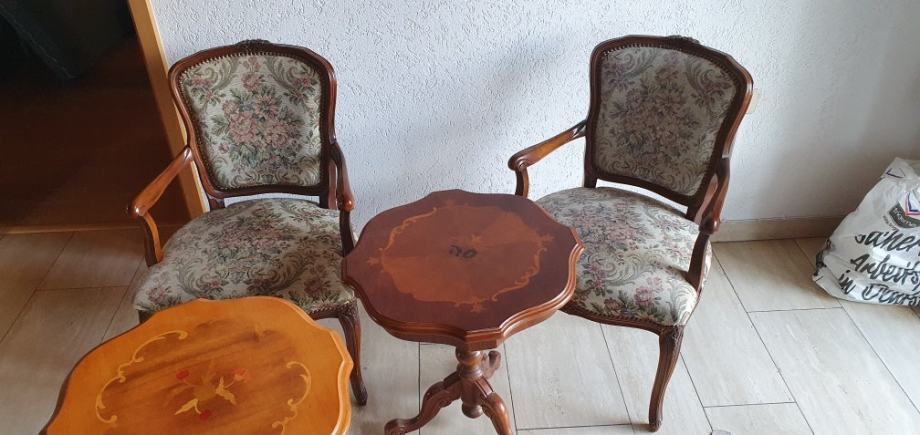 Stolice i dvije fotelje jednoj malo tapecirung oštećen
