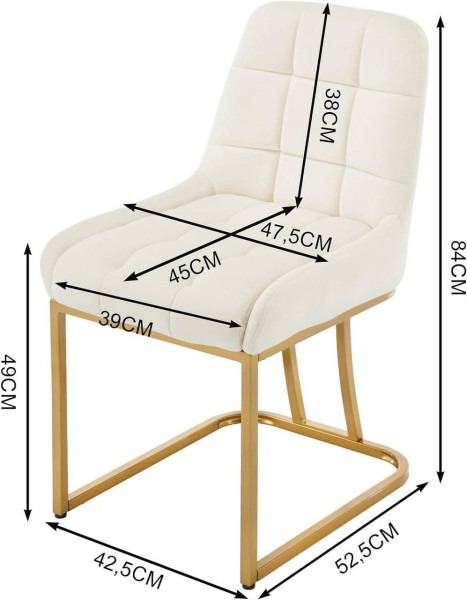 Blagovaonska stolica ima lučni metalni okvir s dvije šipke za pojačanje, tako da uvijek čvrsto stoji na podu i ne sklizne lako. Nosivost stolice: 150 kg. Blago zakrivljeni naslon za leđa pruža optimalnu potporu vašim leđima, dok svilenkasta baršunasta navlaka koja je ugodna za kožu i podstava od visoko elastične pjene visoke gustoće nude visoku udobnost sjedenja za dugotrajno sjedenje. S metalnim okvirom zlatne boje, tapecirani stolac izgleda jednostavno, moderno i elegantno. Prilagođava se svakom interijeru i može se koristiti na mnoge načine kao stol za blagovanje, toaletni stolac, stolac za dnevni boravak, stolac za čitanje, stolac za posjetitelje itd. Metalni okvir opremljen je podesivim klizačima za noge na dnu koji kompenziraju neravnine, držeći stolac za naglasak stabilnim u svakom trenutku i štiteći pod od ogrebotina kada se stolac pomiče. Za sve informacije nazovite na broj telefona 092/399-75-19