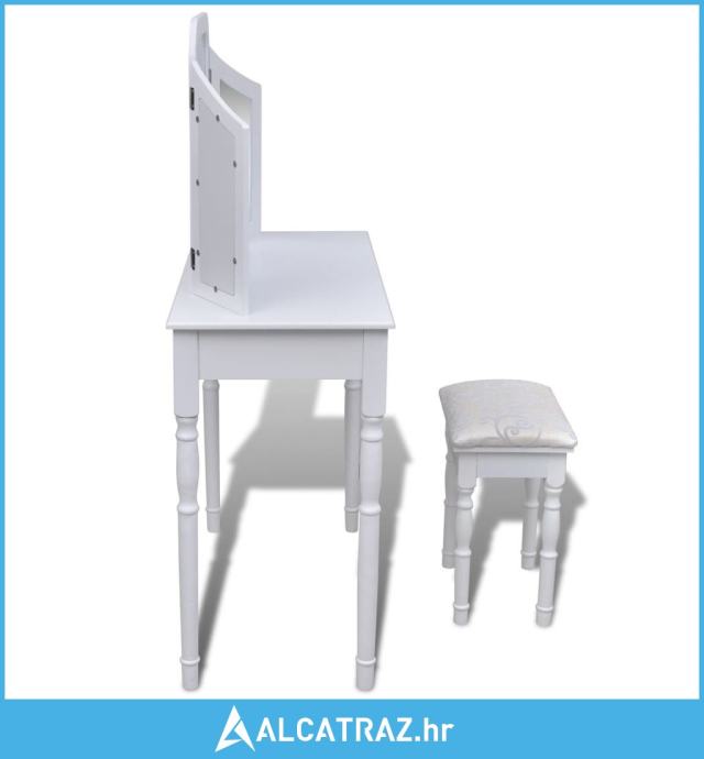 Toaletni Stol s Ogledalom 3-u-1 i Stolicom 2 Ladice Bijeli - NOVO