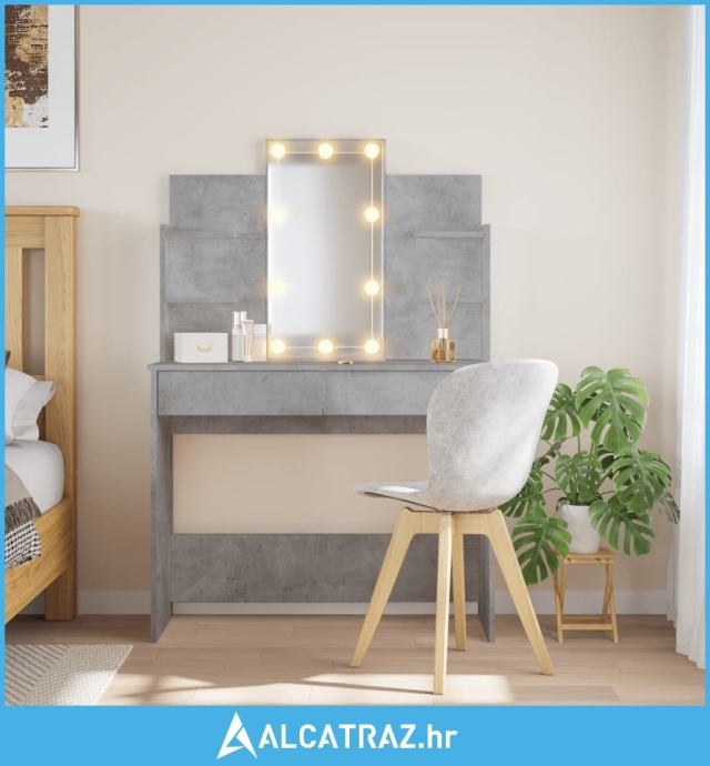 Toaletni stolić s LED svjetlima siva boja betona 96x40x142 cm - NOVO