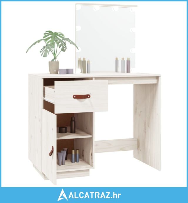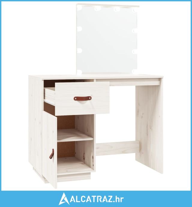 Toaletni stolić s LED svjetlom bijeli 95x50x133,5 cm borovina - NOVO