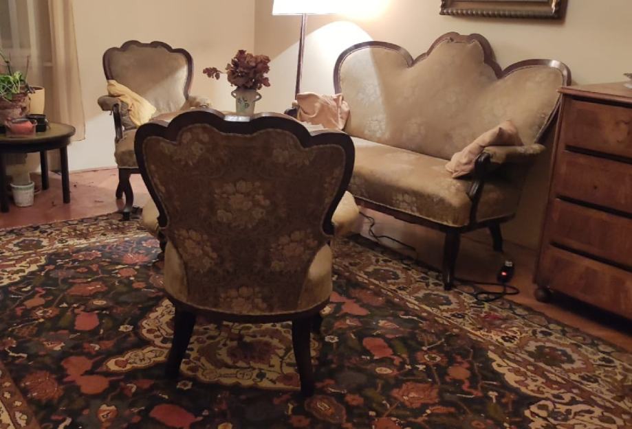Trosjed i dvije fotelje u baroknom stilu. Nalaze se na Medvešćaku.