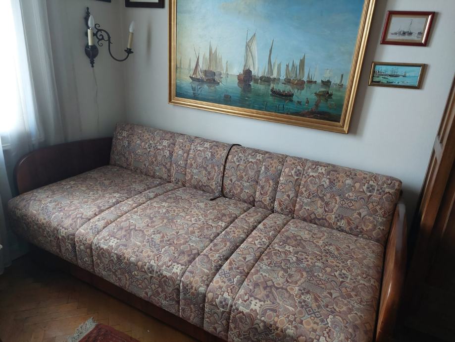 U odličnom stanju. Puno drvo. Presvučen izuzetno kvalitetnim materijalom. Sa ugrađenim spremištem