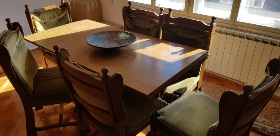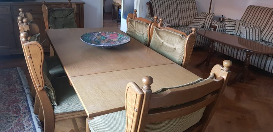 Trpezarija hrastova, stol na razvlacenje 200×80×77 i stolci 6 kom u kompletu u izvrsnom stanju