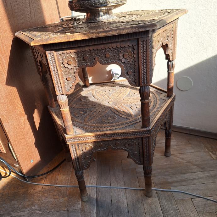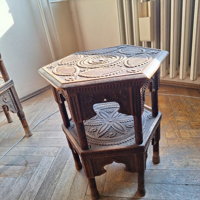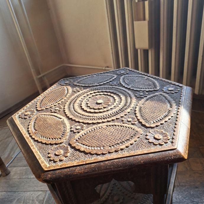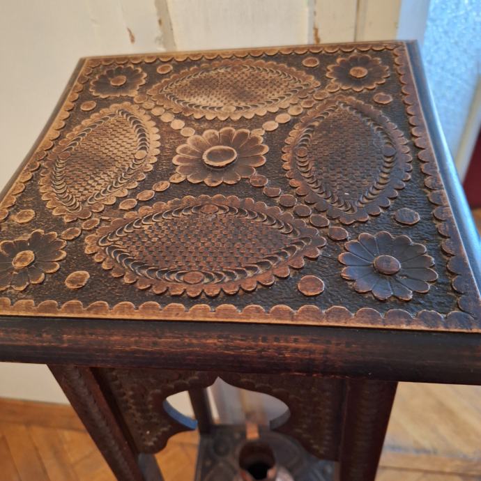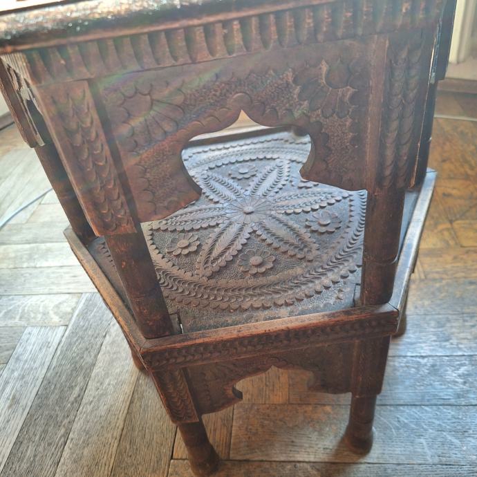 Komplet: stol, četiri stolice i stalak za cvijeće, ručni rad. Starost 200 godina. Izvrsno očuvano.