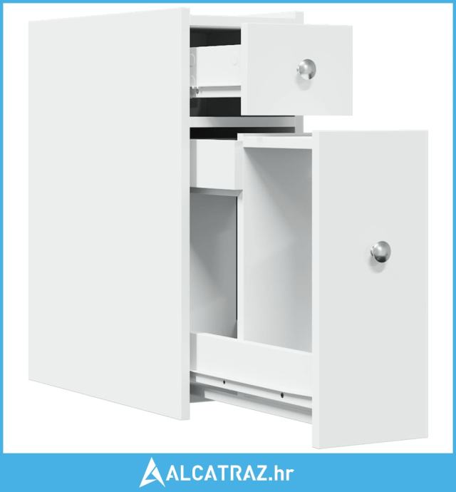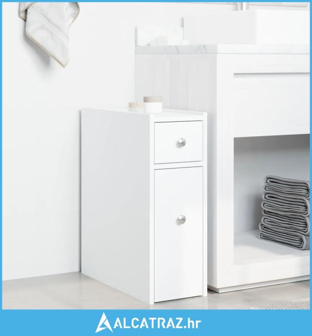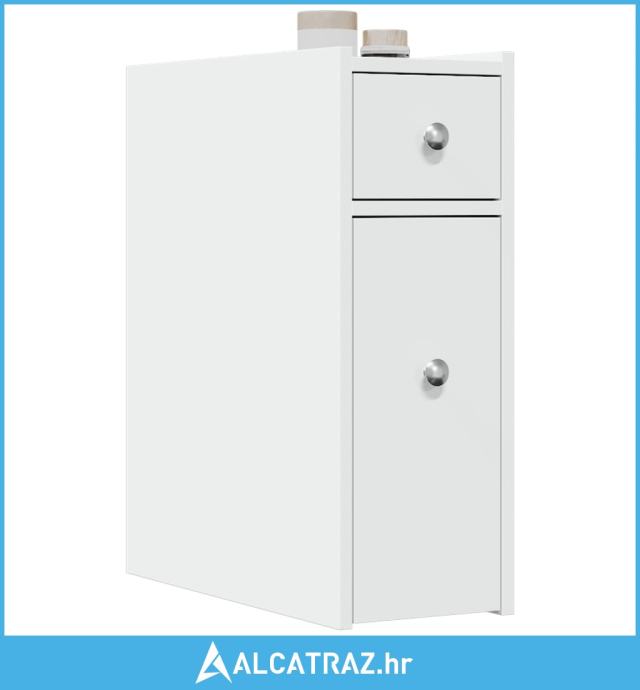 Uski kupaonski ormar s kotačima bijeli od konstruiranog drva - NOVO