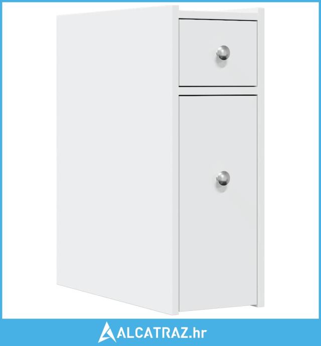 Uski kupaonski ormar s kotačima bijeli od konstruiranog drva - NOVO