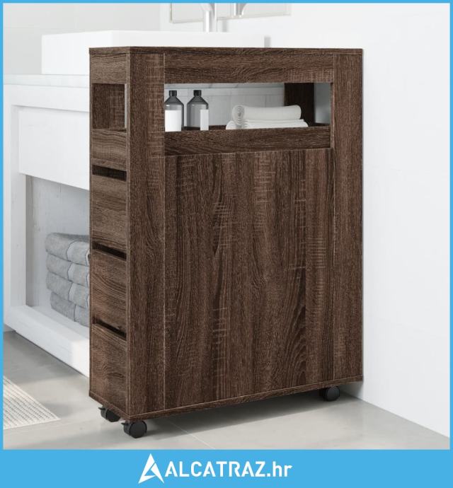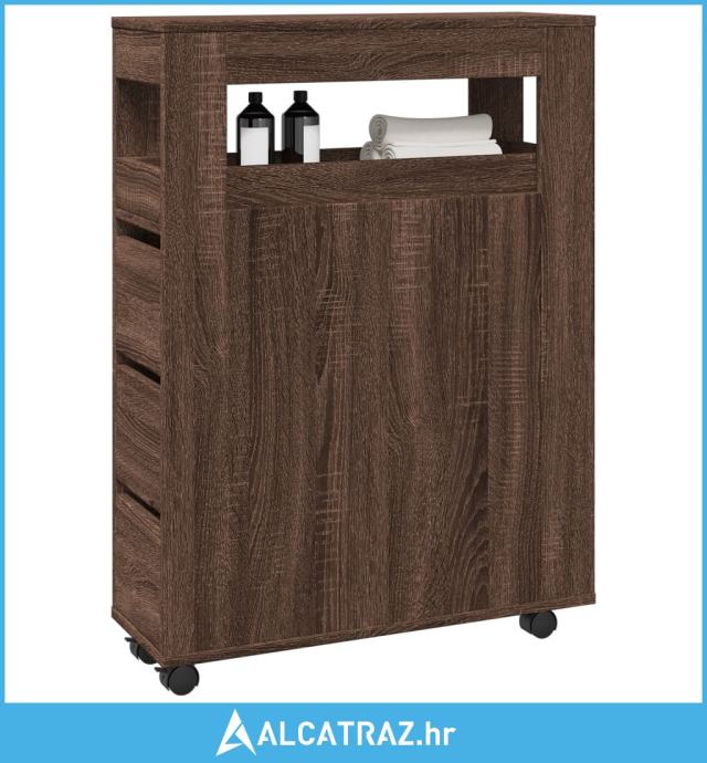 Uski kupaonski ormarić s kotačima boja hrasta konstruirano drvo - NOVO