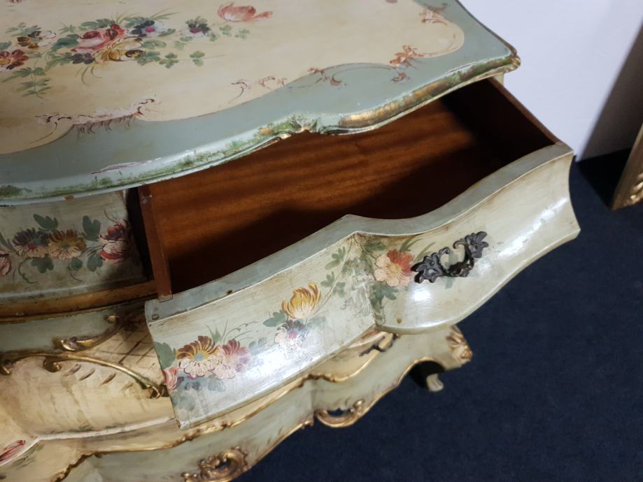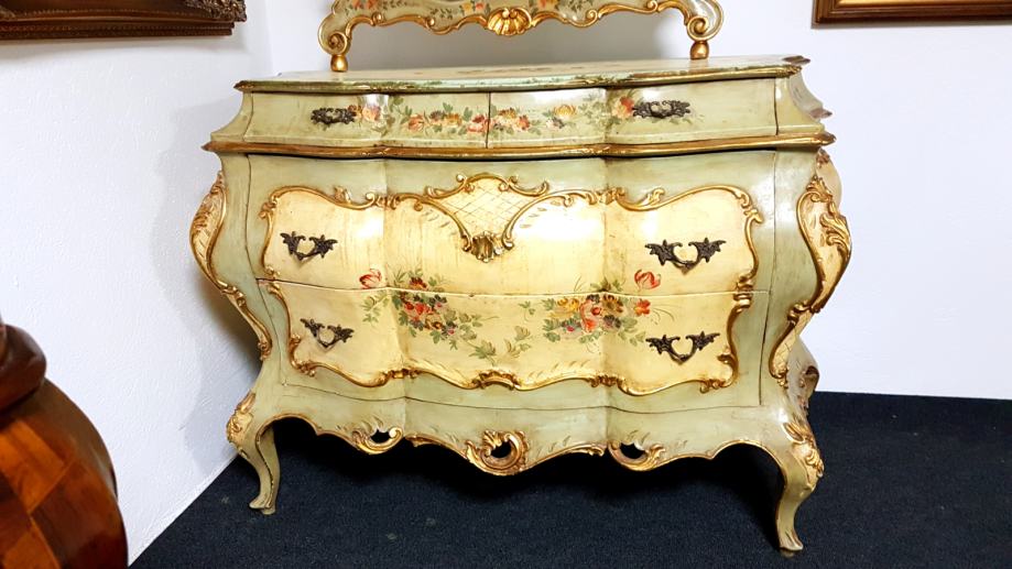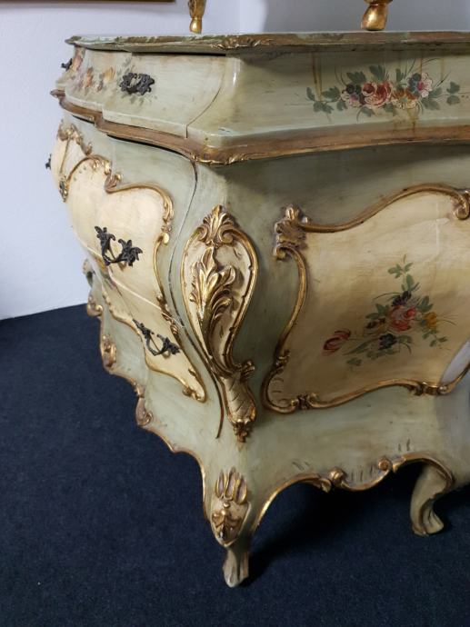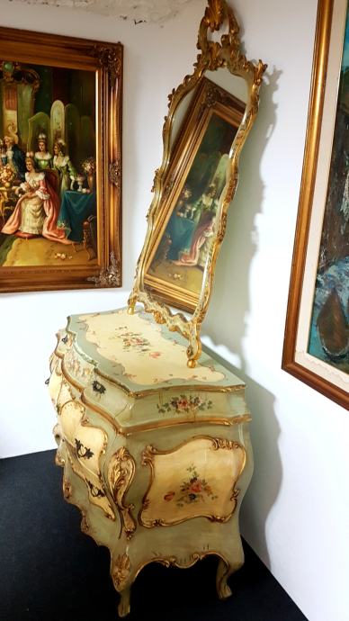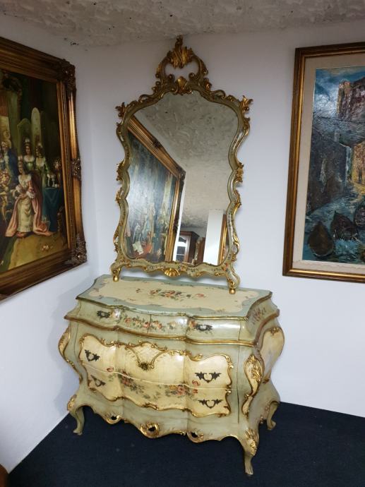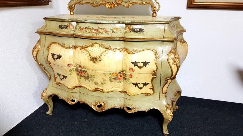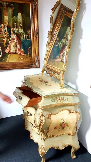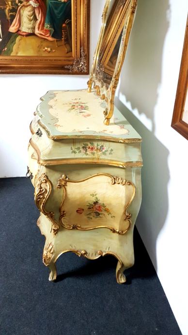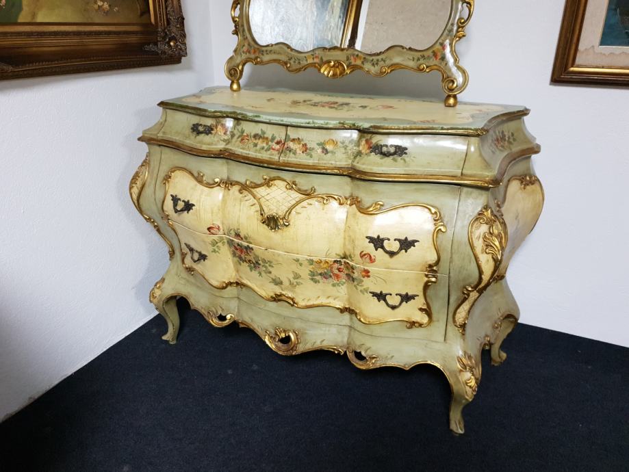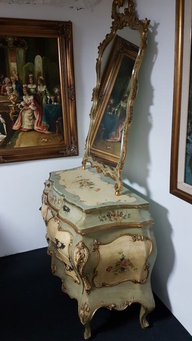 Venecijan bombirana komoda s pripadajućim ogledalom , ručno oslikana, drvena plus nanos gipsa.