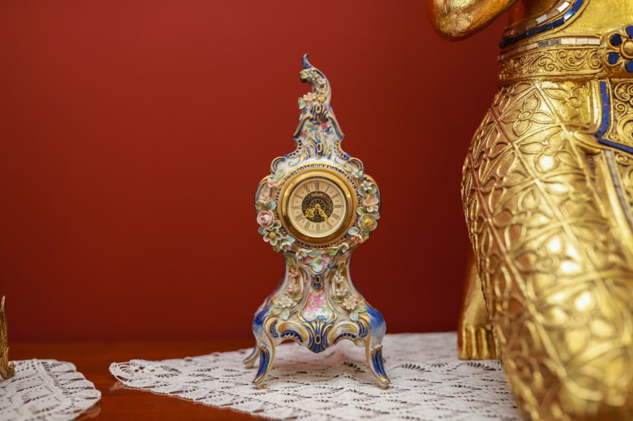 Venecijanski porculanski sat, ručno oslikan, manjih dimenzija, idealan za svaki prostor. Satu potreban manji servis, trenutno neispravan.