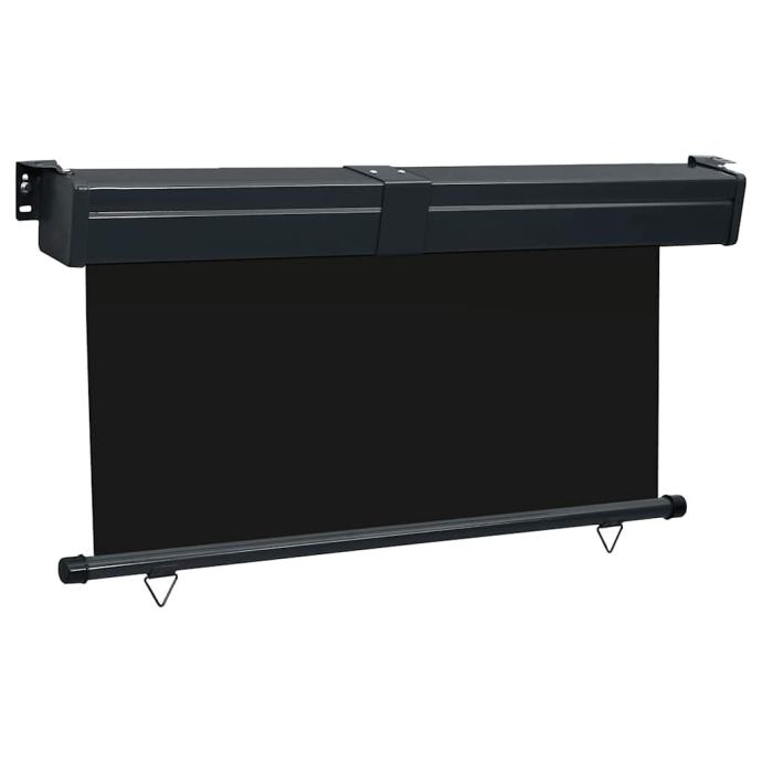 Zastor je napravljen od poliestera otpornog na UV zrake i kidanje. Aluminijski valjak osigurava glatko namatanje. Ima funkciju samostalnog zaključavanja tako da se može zaustaviti na bilo kojem mjestu. Duljina se može podesiti do 250 cm. Tenda se može automatski povući na čeličnu kasetu jednostavnim povlačenjem trokutastih prstena. Osim toga, ova balkonska okomita tenda može se pričvrstiti na zid ili strop prema određenim potrebama.