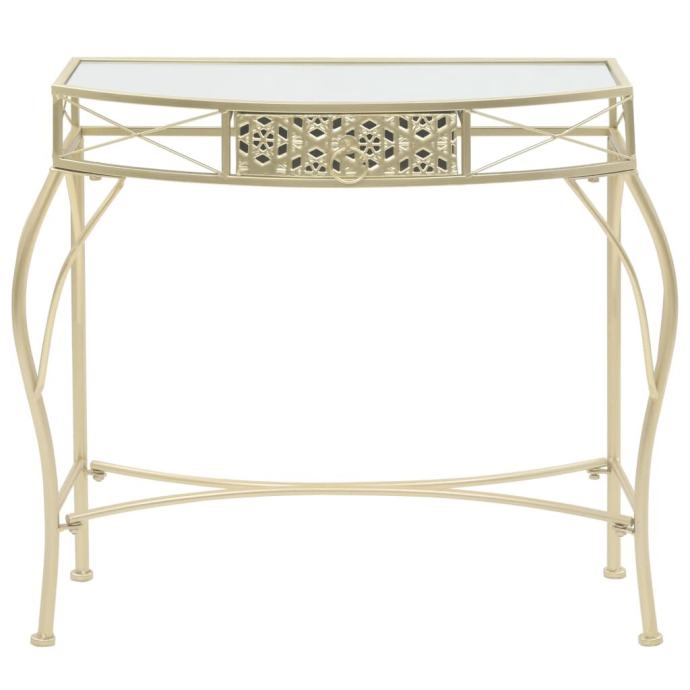 Stolić je napravljen od metalnog okvira i staklene površine, koja je stabilna i lako se čisti. Ovaj bočni stolić ima ladicu koja je ukrašena izuzetnim detaljima, što mu daje antikni izgled i stvara notu elegancije u vašem domu. Ovaj artikal lako se sastavlja.